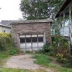 Among the “features” of the house was a sad little detached one-car garage. It had no foundation and over the years had sunk and sagged to the point where it was actually about a foot into the ground. Because it sat so close to the property line it could not be removed and rebuilt — rebuilding would require jacking it up and rebuilding it in place, which didn’t seem feasible. So the only option was demolition.